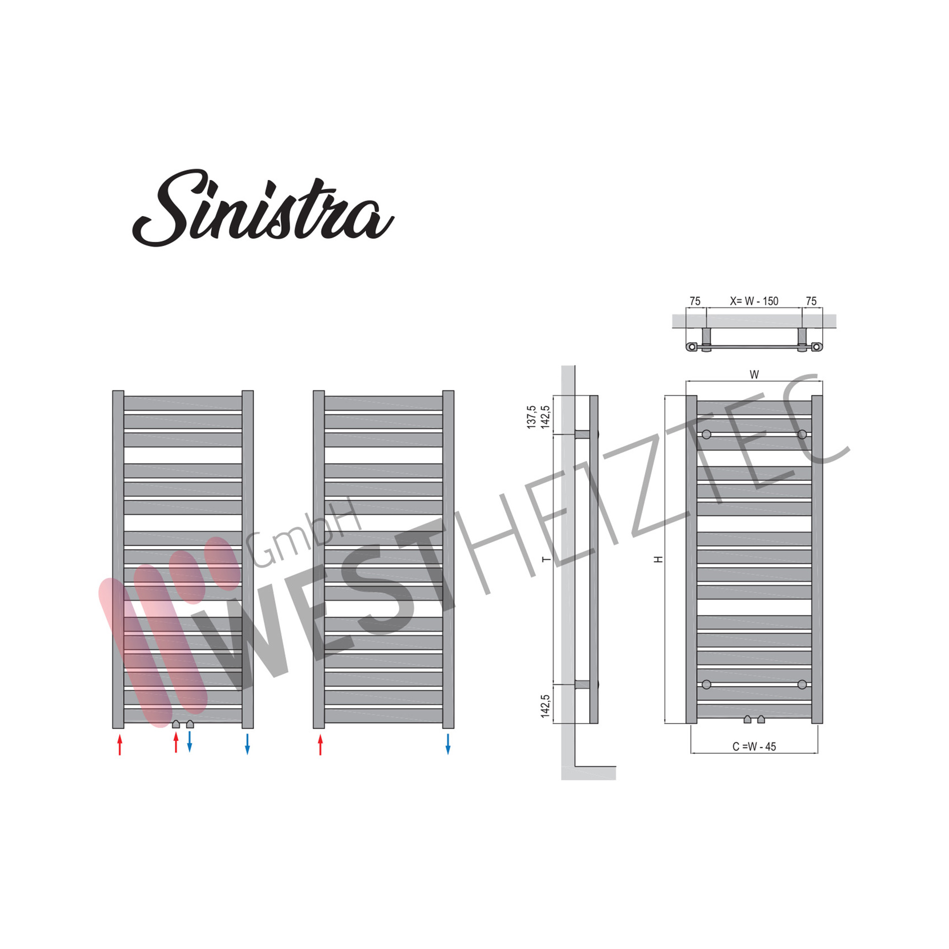 Handtuchheizkörper, SINISTRA, weiß, Mittelanschluss