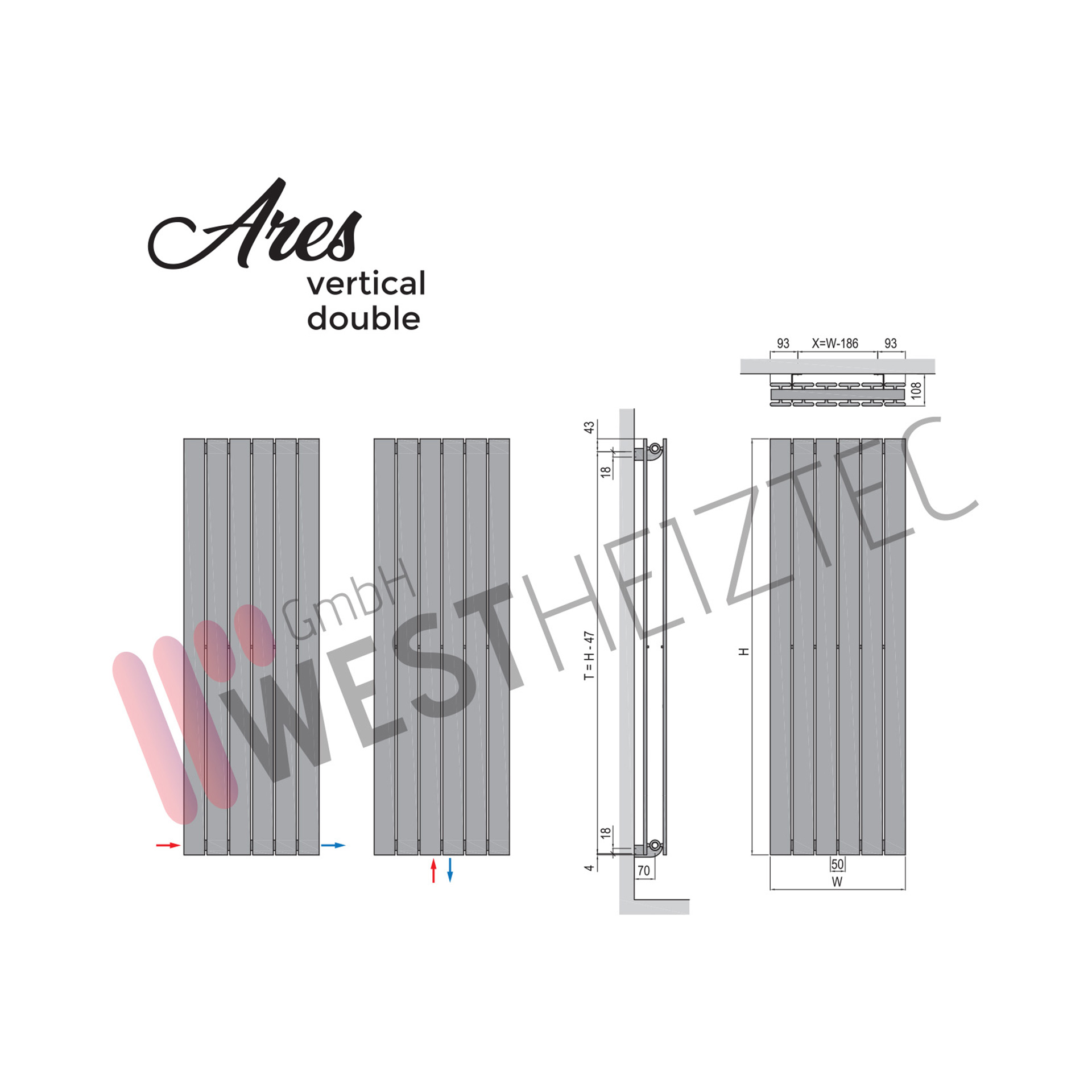 Paneelheizkörper, ARES, vertical, doppelagig, anthrazit