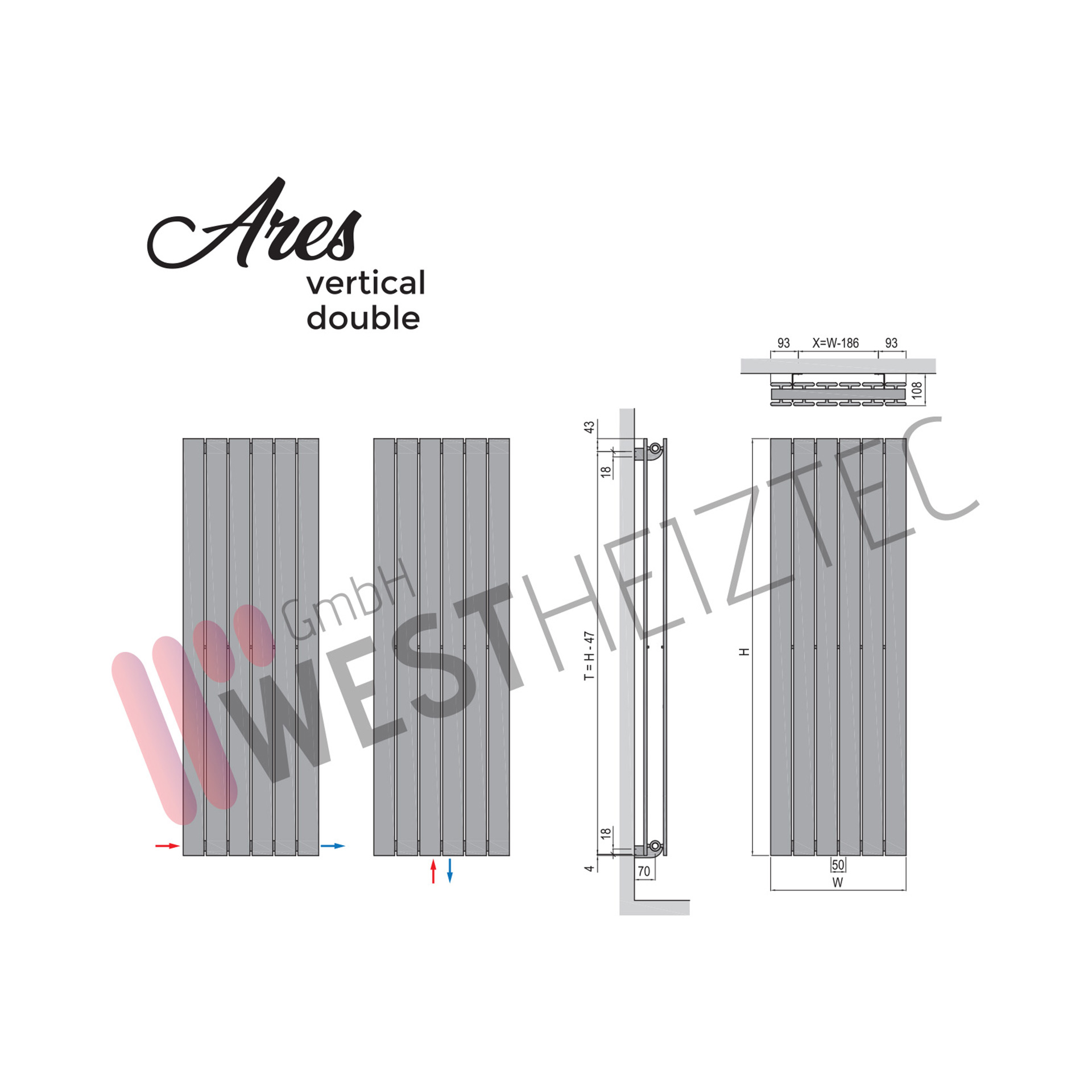Paneelheizkörper, ARES, vertical, doppellagig, weiß
