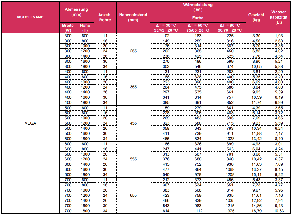 Seitenanschluss 500mm/540mm, Badheizkörper, VEGA, weiß