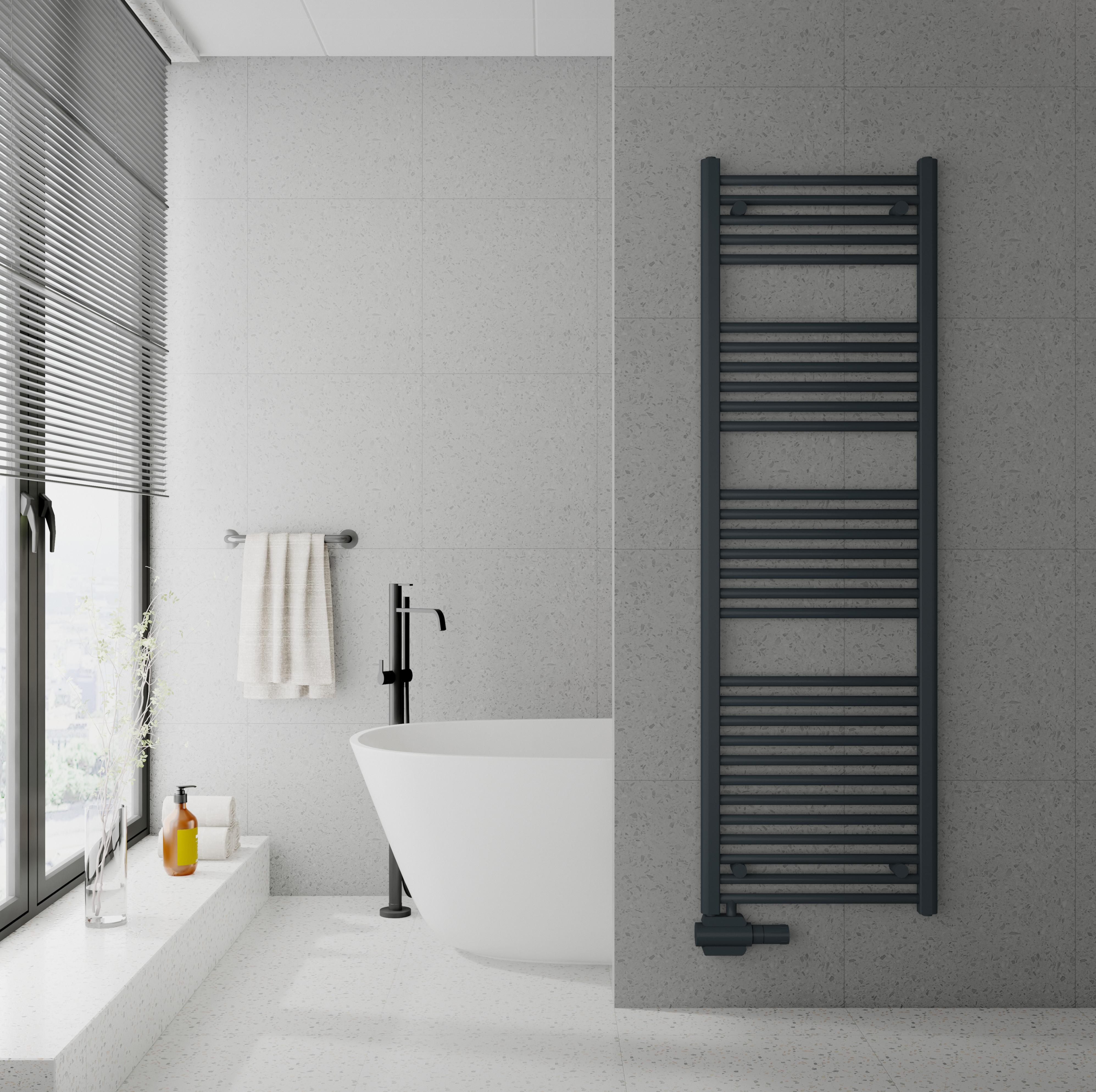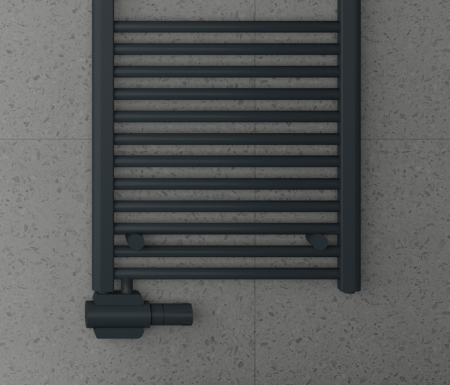 VERSETZTER MITTELANSCHLUSS, Badheizkörper mit Seitenanschluss unten links oder rechts Seitlicher Anschluss, VEGA, anthrazit